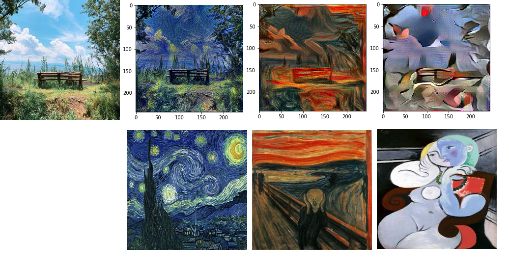 A Neural Algorithm of Artistic Style은 2015년에 발표된 논문으로, 신경망을 이용하여 특정 이미지를 다른 이미지의 화풍을 모방하여 재구성하는 내용을 담고 있다. 발표가 된 직후부터 상당히 화제가 된 논문으로 내가 신경망에 관심을 갖게 된 계기이기도 하다. 본 포스팅에서는 해당 논문에서 소개한 style transfer의 원리를 간략하게 설명하고 논문에 등장한 figure를 재현한다.