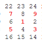 1. 개요문제는 이곳에서 확인할 수 있다. 1부터 시계 방향으로 늘어놓은 뒤 대각선에 있는 숫자들의 합을 구할 수 있다. 아래의 예는 5행 5열의 숫자더미이며 대각선의 숫자의 합은 101이다. 1001행 1001열의 숫자더미에서 대각선의 숫자의 합을 구하는 것이 목표이다. 2. 구현: ver 1.0일반항을 구하여 문제를 해결하자. 1부터 시작하여 오른쪽에 존재하는 숫자들의 개수를 층이라고 정의하자. 예를 들면, 그림 1은 3층이다. 그러면 오른쪽 대각선의 있는 숫자는 층수 번째 홀수의 제곱임을 알 수 있고 이를 이용하여 일반항을 구할 수 있다. # -*- coding: utf-8 -*- n = 500 print(n*(8*(n+1)*(2*n+1)//3+2*n+6)+1) 답음 669171001이다.
